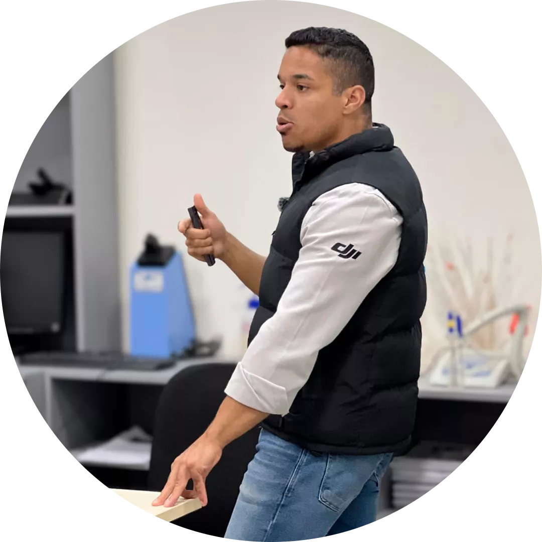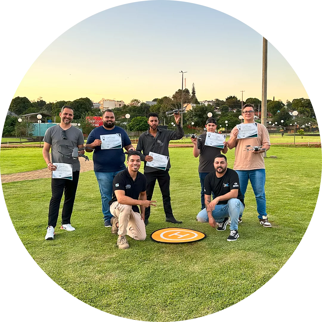 Ministra cursos presenciais e online, formando mais de 800 pilotos de drones com foco em segurança, técnica e aplicação profissional.