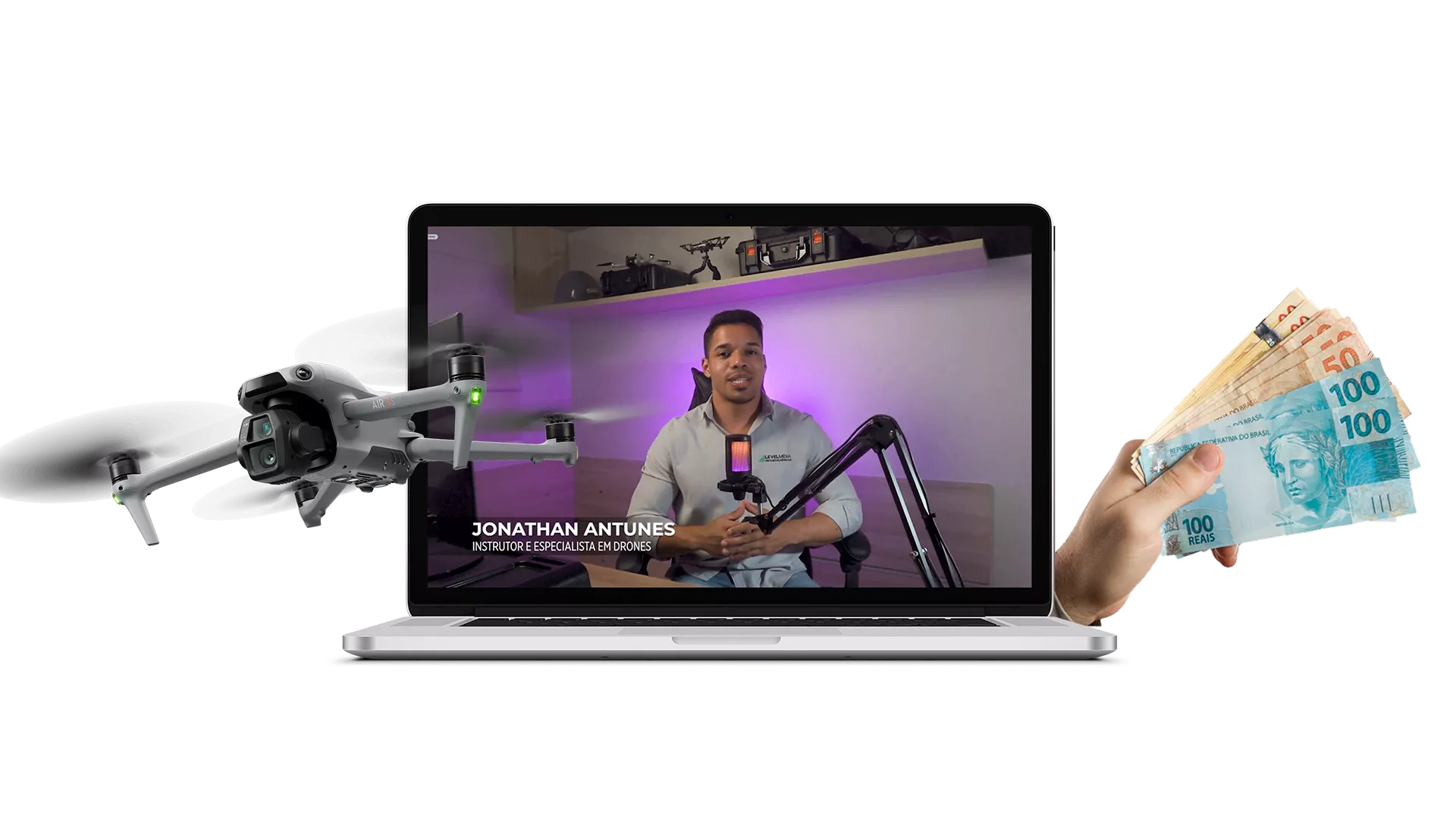 Sou Jonathan Antunes, engenheiro civil e apaixonado por drones. Desde 2019 atuo com tecnologia aérea e já realizei mais de 2.500 voos profissionais em serviços para empresas e órgãos públicos. No começo, tudo era novidade. Comecei com um DJI Phantom 3 usado e uma única bateria que voava por apenas 15 minutos. Enfrentei muitas dúvidas sobre regulamentação e as exigências técnicas do mercado, e foi errando, acertando e estudando muito que ganhei confiança e me especializei na área. Com base nessa vivência real, criei o Método Mestre em Drone, um passo a passo direto ao ponto, pensado para quem quer aprender do zero a pilotar com segurança, técnica e dentro da lei, seja por lazer ou para transformar os drones em uma fonte de renda extra.